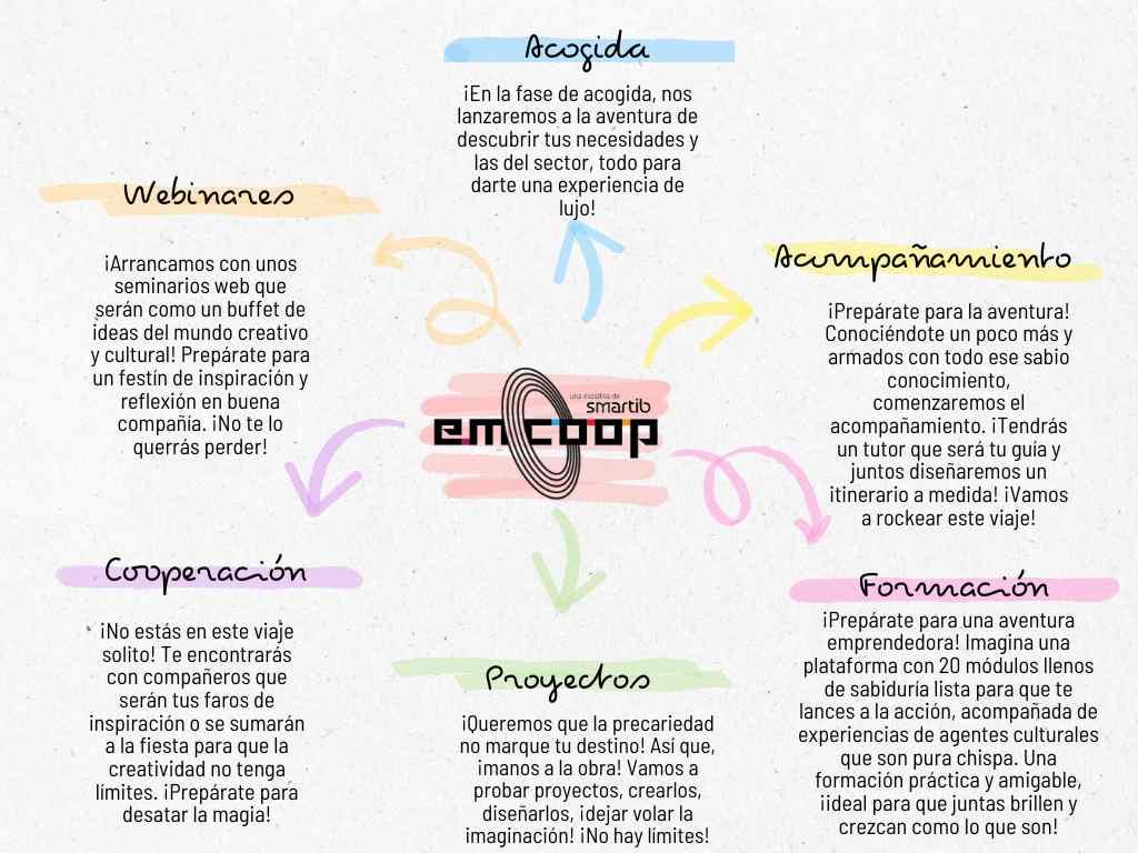 Creemos en el poder transformador de la música, la cultura y el cooperativismo como motores de cambio social. Por eso, hemos desarrollado un entorno integral que combina formación especializada, acompañamiento personalizado y la creación de redes de colaboración para que los jóvenes emprendedores puedan convertir sus ideas en proyectos sostenibles y exitosos.